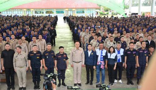 วันนี้ (4 ธันวาคม 68) เวลา 14.00 น. ณ เทศบาลตลาดนิคมปราสาท อำเภอบ้านกรวด จังหวัดบุรีรัมย์ นายอนุทิน ชาญวีรกูล นายกรัฐมนตรี และรัฐมนตรีว่าการกระทรวงมหาดไทยพร้อมคณะรัฐมนตรี ลงพื้นที่ตรวจราชการ และมอบนโยบายรักษาความมั่นคงตามแนวชายแดน และพิทักษ์พื้นที่ส่วนหลัง ให้แก่ชุดรักษาความปลอดภัย (ชรบ.) 2,000 นาย โดยมีนายปิยะ ปิจนำ ผู้ว่าราชการจังหวัดบุรีรัมย์ และหัวหน้าส่วนราชการให้การต้อนรับและรายงานสรุปสถานการณ์ต่อคณะรัฐมนตรีอย่างพร้อมเพรียง