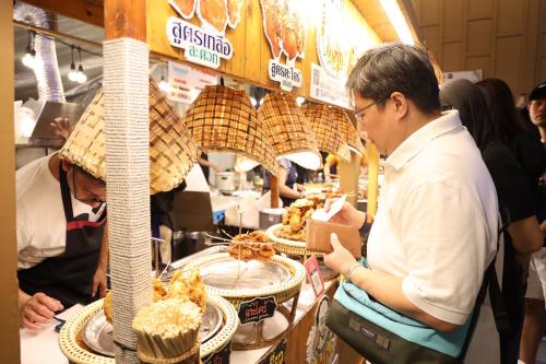รองอธิบดีกรมการพัฒนาชุมชน ตรวจเยี่ยมบูธและให้กำลังใจผู้ผลิต ผู้ประกอบการ OTOP และ OTOP ชวนชิม ในพื้นที่จัดแสดงการจัดงานกาชาด ประจำปี 2568