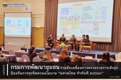 กรมการพัฒนาชุมชน ร่วมขับเคลื่อนการตรวจราชการเชิงรุก ป้องกันการทุจริตตามนโยบาย “มหาดไทย ทำทันที Action”