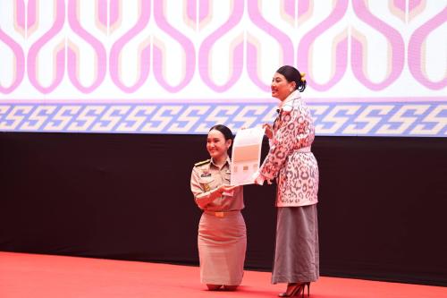 วันนี้ (21 มกราคม 2569) สมเด็จพระเจ้าลูกเธอ เจ้าฟ้าสิริวัณณวรี นารีรัตนราชกัญญา เสด็จไปทอดพระเนตรนิทรรศการ และการจัดแสดงผลงานภูมิปัญญาผ้าไทย และงานหัตถกรรมชุมชน จุดดำเนินการจังหวัดขอนแก่น ณ ศูนย์ประชุมอเนกประสงค์กาญจนาภิเษก มหาวิทยาลัยขอนแก่น ตำบลในเมือง อำเภอเมืองขอนแก่น จังหวัดขอนแก่น ทอดพระเนตรนิทรรศการและการจัดแสดงผลงานภูมิปัญญาผ้าไทยและงานหัตถกรรมชุมชน จากจังหวัดขอนแก่น ชัยภูมิ นครพนม นครราชสีมา บุรีรัมย์ มหาสารคามรวม ร้อยเอ็ด ศรีสะเกษ สกลนคร สุรินทร์ หนองบัวลำภู อุดรธานี และอุบลราชธานี รวม 28 กลุ่ม ได้แก่ กลุ่ม JUTATIP ศูนย์การเรียนรู้หัตถกรรมผ้าไหมมัดหมี่ อำเภอชนบท โชติกาไหมไทย วิสาหกิจชุมชนทุ่งเศรษฐี วิสาหกิจชุมชนผ้าไหมมัดหมี่บ้านหัวฝาย และแบรนด์ Thonnawan museum จังหวัดขอนแก่น กลุ่มไหมมีชัย จังหวัดชัยภูมิ กลุ่มแฝดสาว 88 จังหวัดนครพนม กลุ่มฅญาบาติก DETAIL ชุมชนเครือข่ายทางวัฒนธรรมหนองไผ่ล้อม กลุ่มทอผ้าไหมและดอกไม้ประดิษฐ์บ้านมาบเชือก จังหวัดนครราชสีมา กลุ่มทอผ้าไหมบ้านทุ่งสว่าง จังหวัดบุรีรัมย์ กลุ่มหวายเยาวชน ผาสาทแก้ว ผ้าทอลายโบราณ กลุ่มจำปาคำ จังหวัดมหาสารคาม เมืองไม้บาติก ที จัตุวัน ไทยซิลค์ กลุ่มทอผ้าลัลณ์ลลิล จังหวัดร้อยเอ็ด กลุ่มผ้าทอมือบ้านเอือดจังหวัดศรีสะเกษ กลุ่มทอผ้าไหมบ้านกลาง จังหวัดสกลนคร กลุ่มทอผ้าไหมหัสดินทร์ เพชรรินทร์ไหมไทย จังหวัดสุรินทร์ ทิพย์ธิดาผ้าไทย ศูนย์การเรียนรู้ขวัญตา จังหวัดหนองบัวลำภู วิสาหกิจชุมชนสิ่งทอเศรษฐกิจหมุนเวียนบ้านดงเรือง ธ.มณโฑ จังหวัดอุดรธานี และ กลุ่มระกา ชุบเงินชุบทอง จังหวัดอุบลราชธานี รวมทั้ง กลุ่มศิลปาชีพ ภาคตะวันออกเฉียงเหนือ ซึ่งน้อมนำแนวพระดำริ "ผ้าไทยใส่ให้สนุก" มาพัฒนาต่อยอดภูมิปัญญาผ้าไทยที่เป็นมิตรต่อสิ่งแวดล้อม ซึ่งย้อมผ้าด้วยสีจากธรรมชาติ และใช้โทนสีจากหนังสือเทรนด์บุ๊ก เพื่อให้ตอบโจทย์การใช้สีที่มีความทันสมัย มีการใช้วัตถุดิบจากเส้นใยและพืชพรรณภายในชุมชน ตามแนวพระดำริ “Sustainable Fashion : แฟชั่นแห่งความยั่งยืน”
