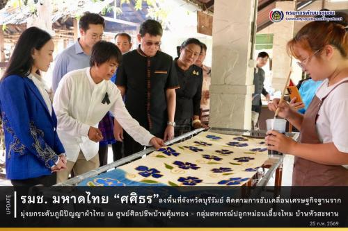 รมช. มหาดไทย “ศศิธร” ลงพื้นที่จังหวัดบุรีรัมย์ ติดตามการขับเคลื่อนเศรษฐกิจฐานราก มุ่งยกระดับภูมิปัญญาผ้าไทย ณ ศูนย์ศิลปชีพบ้านตุ้มทอง - กลุ่มสหกรณ์ปลูกหม่อนเลี้ยงไหม บ้านหัวสะพาน