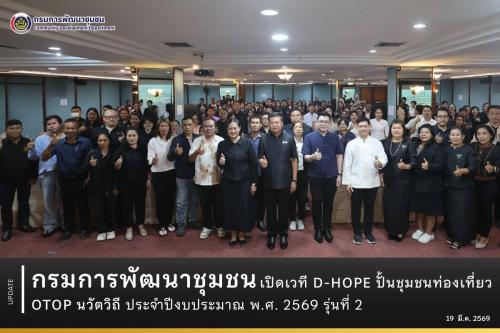 กรมการพัฒนาชุมชน เปิดเวที D-HOPE ปั้นชุมชนท่องเที่ยว OTOP นวัตวิถี ประจําปีงบประมาณ พ.ศ. 2569 รุ่นที่ 2